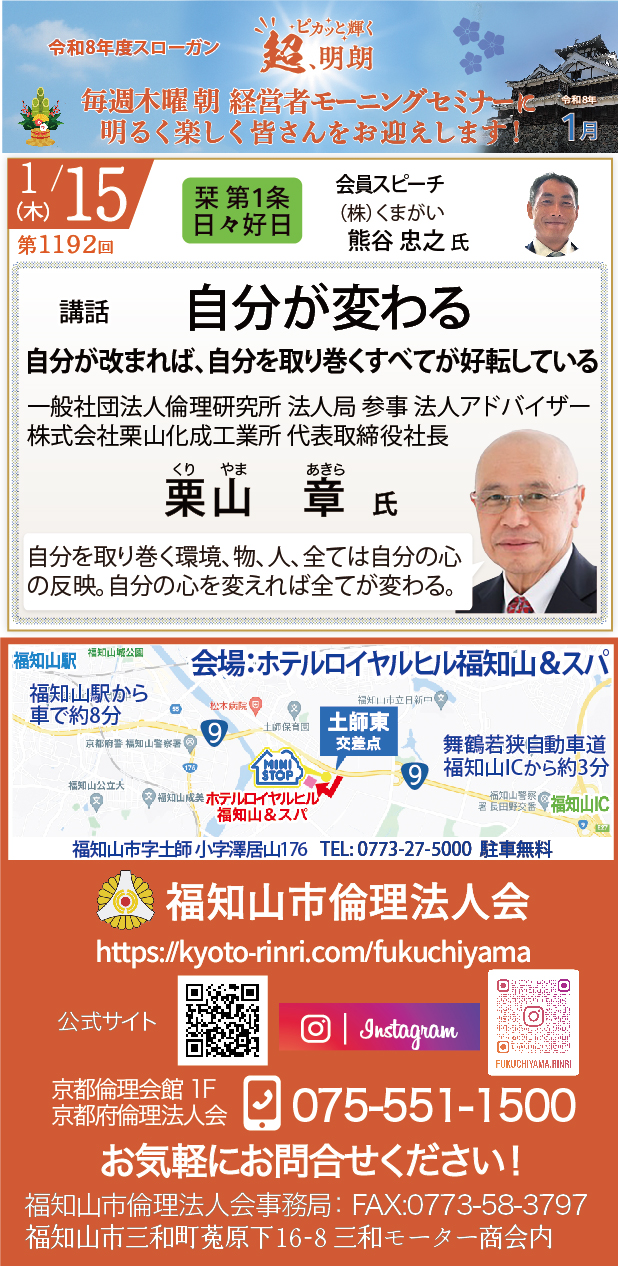Home スケジュール一覧 - 一般社団法人倫理研究所 京都府倫理法人会 「自分が変わる」~自分が改まれば、自分を取り巻くすべて、が好転している~