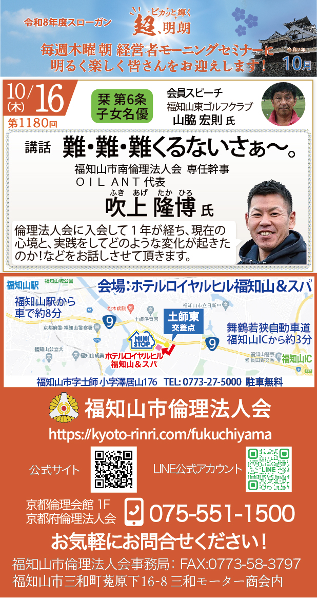 倫理法人会に入会して1年が経ち、現在の心境と実践をしてどのような変化がおきたのか!などをお話しさせて頂きます。