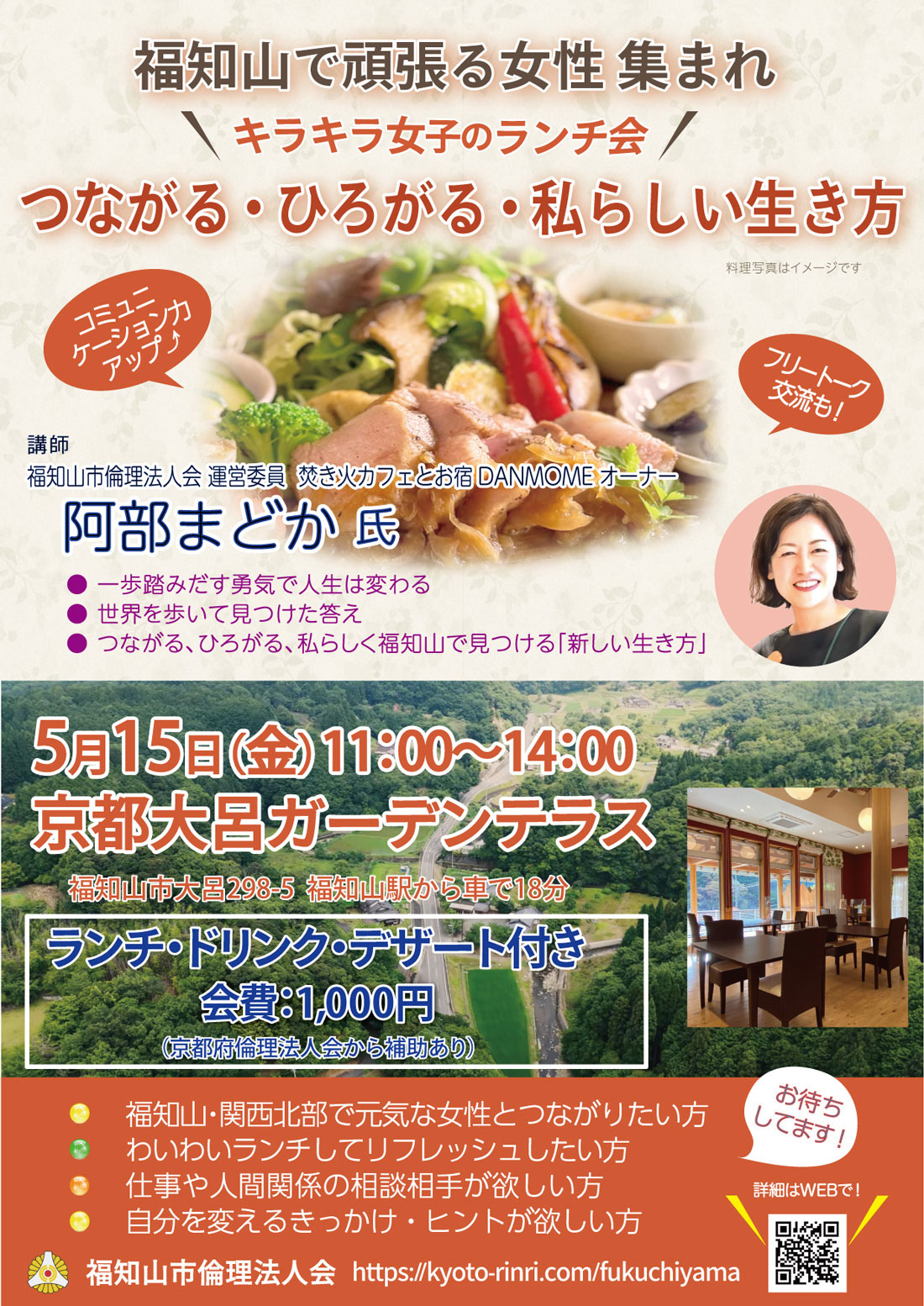 福知山・京都府中北部、兵庫県北部で頑張っている女性同士が集まり、気軽にランチしながら交流を楽しむ機会です。